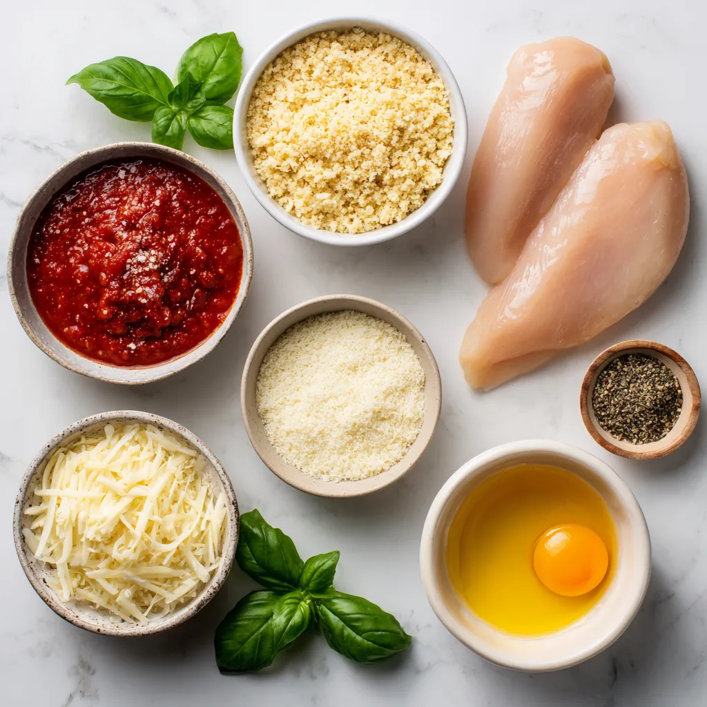 To make Air Fryer Chicken Parmesan, you need simple yet tasty ingredients. Start with two boneless, skinless chicken breasts. These will be your main stars. The panko breadcrumbs give a great crunch. I always use one cup for the best texture. Next, grab half a cup of finely grated Parmesan cheese. It adds a rich flavor.