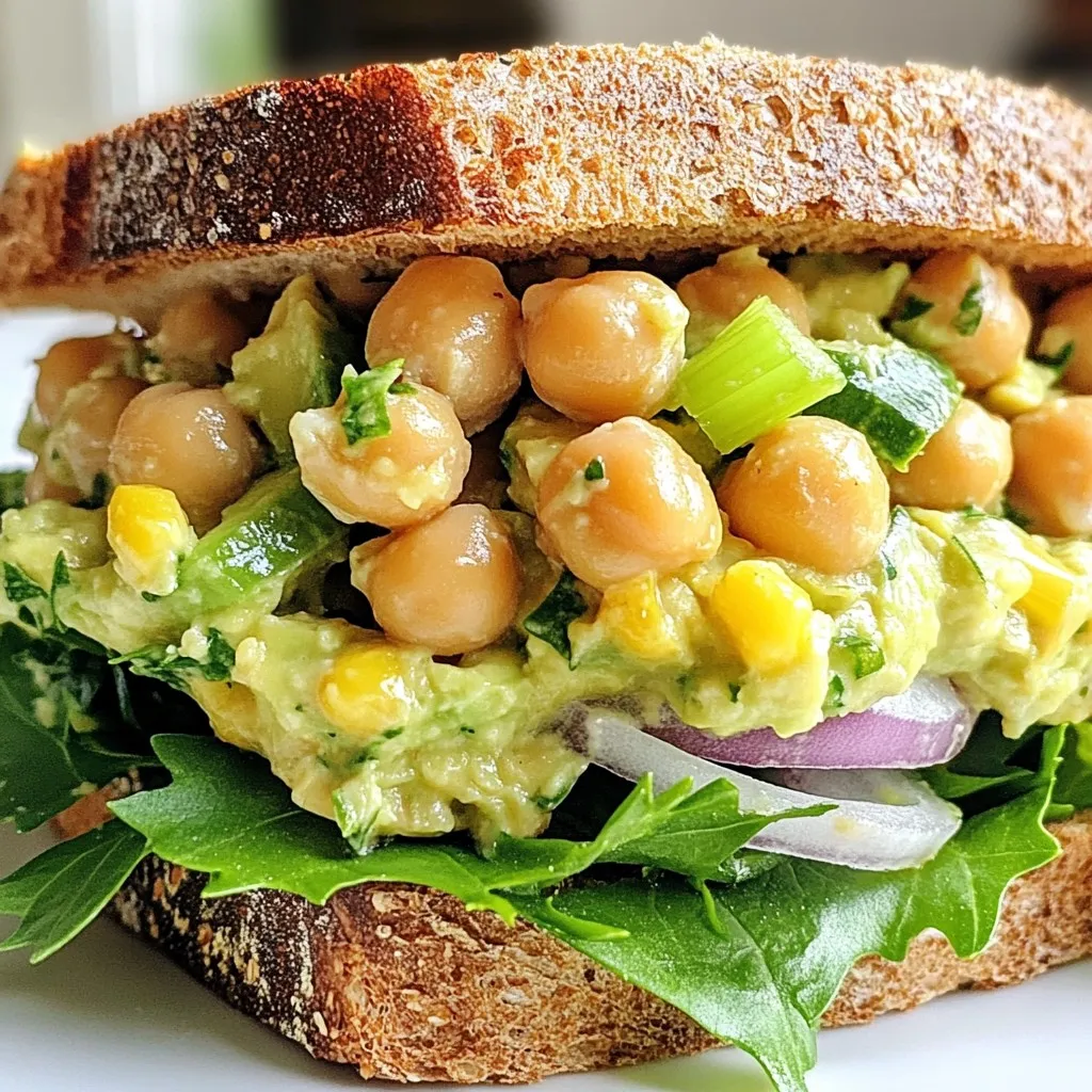 – Assemble the Sandwich: Lay leafy greens on the bottom two slices of bread. Generously spoon the avocado chickpea mixture on top of the greens. This helps keep the bread from getting soggy. Place the remaining slices of bread on top to complete your sandwich.