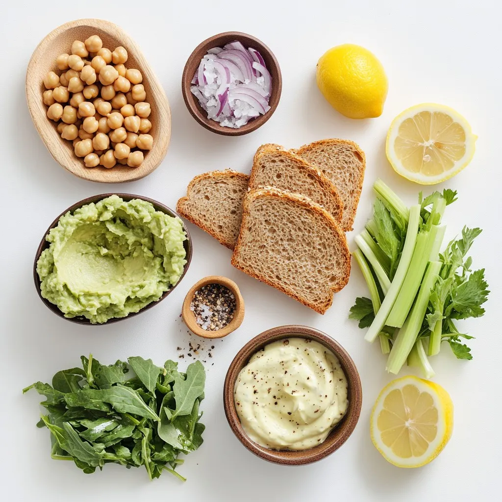 The ingredients for the avocado chickpea salad sandwich are simple yet packed with flavor. First, grab a ripe avocado. This is the star of the dish and adds creaminess. Next, you’ll need one can of chickpeas. Chickpeas give protein and a nice bite.