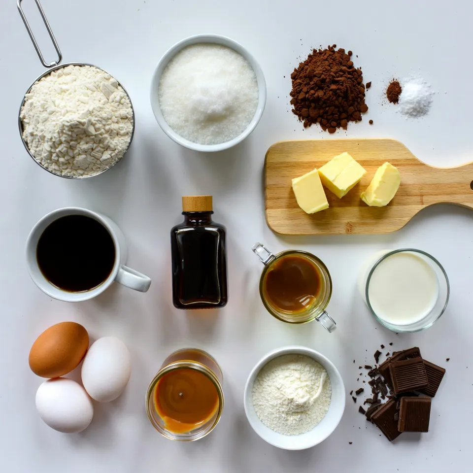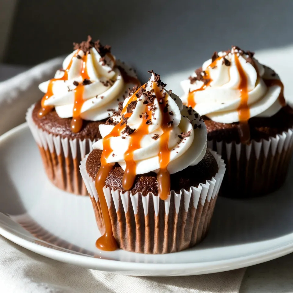 - 1 ½ cups all-purpose flour - 1 cup granulated sugar - ½ cup unsweetened cocoa powder - 1 teaspoon baking powder - ½ teaspoon baking soda - ½ teaspoon salt - ½ cup unsalted butter, softened - 2 large eggs, at room temperature - 1 teaspoon pure vanilla extract - ½ cup brewed coffee, cooled - ½ cup whole milk - 1 cup caramel sauce, plus extra for drizzling - 1 cup heavy whipping cream, chilled - 2 tablespoons powdered sugar - 1 teaspoon pure vanilla extract (for whipped cream) - Optional: Chocolate shavings for garnish I love using these simple ingredients to create the perfect Caramel Macchiato Cupcakes. The dry mix forms a rich base. The cocoa powder provides depth and a hint of chocolate. The brewed coffee gives that signature macchiato taste. For the wet ingredients, I always choose room temperature eggs and milk. This helps the batter mix well and rise beautifully. Softened butter creates a fluffy texture, which is key to soft cupcakes. The toppings are where the magic happens! The caramel sauce adds sweetness and a sticky finish. I enjoy whipping the cream until it’s light and fluffy. It creates a lovely contrast with the dense cupcake. If you want to impress, sprinkle some chocolate shavings on top. This not only looks great but also adds a fun crunch. Gather all these ingredients, and you’re ready to bake a treat that everyone will adore! {{ingredient_image_2}} - Preheat oven to 350°F (175°C). - Line muffin tin with cupcake liners. Make sure they fit well. - In a large mixing bowl, combine the dry ingredients: flour, sugar, cocoa, baking powder, baking soda, and salt. Mix well until no lumps remain. - In a separate bowl, beat the softened butter until creamy. Add the eggs one by one, mixing well after each. Stir in the vanilla extract. - Slowly add the dry mix into the butter mixture. Alternate with the cooled coffee and whole milk. Mix until smooth, but don’t overdo it. - Fill each cupcake liner about two-thirds full with batter. - Bake for 18-20 minutes. Check with a toothpick. If it comes out clean, they’re done! - Let the cupcakes cool in the tin for about 5 minutes. Then, move them to a wire rack to cool completely. - Use room temperature ingredients. This helps the batter mix evenly. - Avoid overmixing the batter. Mixing too much can make cupcakes tough. - Chill your mixing bowl and beaters. Cold tools whip cream better. - Beat until stiff peaks form. This gives your whipped cream texture and height. - Drizzle caramel sauce elegantly. A light hand creates a beautiful look. - Use a piping bag for whipped cream. This helps you control the design. These tips will help you create delicious Caramel Macchiato Cupcakes that impress! Pro Tips Use Room Temperature Ingredients: Ensuring your eggs and butter are at room temperature helps them blend more easily into the batter, resulting in a smoother texture. Don’t Overmix the Batter: Mix the batter only until combined to avoid tough cupcakes. A few lumps are okay! Chill Your Whipping Cream: For best results, make sure your heavy whipping cream is well chilled before whipping. This helps achieve the perfect stiff peaks. Store Properly: Keep the cupcakes in an airtight container at room temperature for up to 2 days or in the fridge for up to a week. This keeps them fresh and moist! {{image_4}} You can make your caramel macchiato cupcakes even more special. Try adding espresso powder for a stronger coffee flavor. Just a teaspoon goes a long way in enhancing the coffee taste. You can also mix in chocolate chips into the batter. This addition gives a nice chocolatey surprise with each bite. If you need a gluten-free option, use gluten-free flour instead of all-purpose flour. This swap works well and keeps the cupcakes tasty. For a dairy-free version, choose plant-based substitutes like almond milk and coconut cream. These options ensure everyone can enjoy these delicious treats. Feeling adventurous? Swap the caramel sauce for chocolate ganache. This change offers a rich and decadent twist. You could also use flavored whipped cream, like mocha or vanilla bean, for a fun topping. Each variation adds a unique touch to your cupcakes and keeps things exciting! Store your caramel macchiato cupcakes at room temperature in an airtight container. This keeps them fresh and tasty. If you top them with whipped cream, refrigerate to keep them longer. The cold helps maintain that light, fluffy texture. You can freeze unbaked batter for later use. Just scoop it into cupcake liners and place them in a freezer-safe container. When you're ready, bake them straight from the freezer, adding a few extra minutes to the bake time. For baked cupcakes, allow them to cool completely first. Wrap each cupcake tightly in plastic wrap, then place them in a freezer-safe bag. They will stay fresh for about three months. When stored at room temperature, the cupcakes stay fresh for about three days. If you refrigerate them, they can last up to a week. Always check for any signs of spoilage before enjoying your sweet treat! To make your cupcakes fluffier, start with room temperature ingredients. Use equal parts of wet and dry ingredients. Mix until just combined. Overmixing can lead to dense cupcakes. Also, ensure you beat the butter well until creamy. This helps add air into the batter. Incorporating eggs one by one also helps with fluffiness. Lastly, gently fold in the dry ingredients to keep the air in. Yes, you can switch up the frosting. Cream cheese frosting adds a tangy twist. A mocha frosting can enhance the coffee flavor. You could also try a classic buttercream. For something lighter, use whipped cream with a hint of vanilla. Each option pairs well with the caramel flavor in the cupcakes. Feel free to get creative with your frosting choices. You can find Caramel Macchiato Cupcakes at local bakeries. Many coffee shops also offer them, especially those that sell pastries. Look for bakeries known for gourmet treats. Some grocery stores with a baker