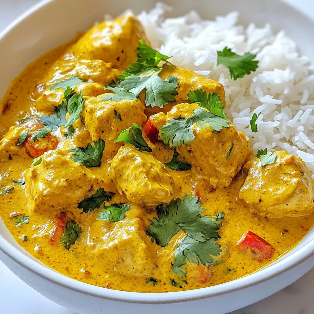 A rich and flavorful chicken korma made with coconut milk and spices.