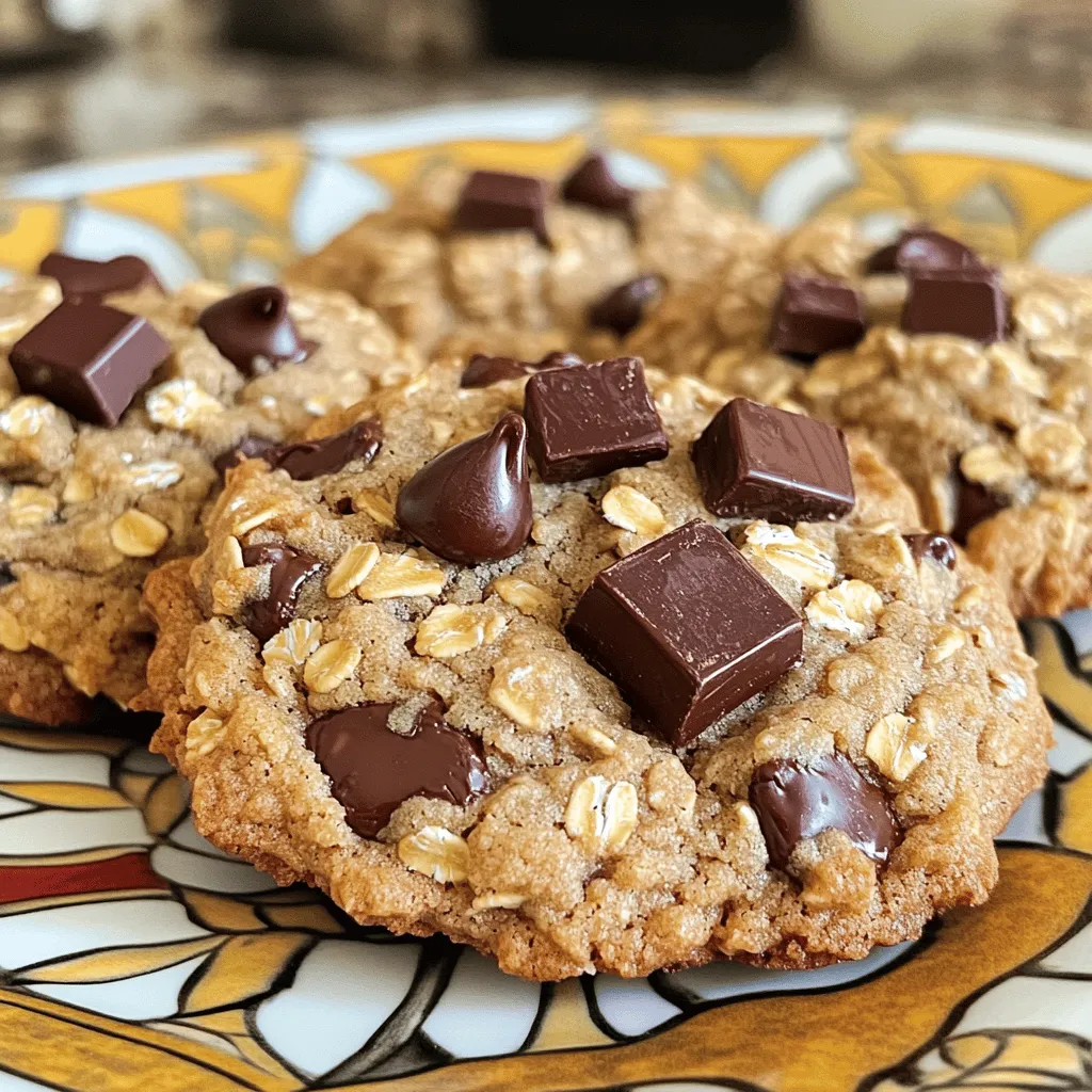 To make Chocolate Chip Banana Oat Cookies, you need a few simple ingredients. These items come together to create a tasty treat that feels good to eat. Here’s what you will need: - 2 ripe bananas, well-mashed - 1 cup rolled oats - 1/2 cup almond flour - 1/2 teaspoon baking soda - 1/4 teaspoon fine salt - 1/4 cup honey or pure maple syrup - 1/2 teaspoon vanilla extract - 1/3 cup dark chocolate chips - Optional: 1/4 cup chopped walnuts or pecans Each ingredient plays a key role. The ripe bananas add natural sweetness and moisture. Rolled oats give the cookies a hearty texture. Almond flour makes them soft and nutty. Baking soda helps them rise. Fine salt balances the sweetness. Honey or maple syrup adds extra flavor. Vanilla extract gives a warm touch. Dark chocolate chips bring rich taste. If you like, add nuts for crunch! Gather these ingredients before you start. This helps make the process smooth and fun. Enjoy the journey of baking these delicious cookies! 1. Preheating the oven: Start by preheating your oven to 350°F (175°C). This step ensures your cookies bake evenly. 2. Preparing the baking sheet: Line your baking sheet with parchment paper. This helps prevent sticking and makes cleanup easy. 3. Mashing the bananas: Take your ripe bananas and mash them in a large bowl. Use a fork or potato masher. Aim for a smooth texture with no big lumps. 4. Combining dry and wet ingredients: Add the rolled oats, almond flour, baking soda, and fine salt to the mashed bananas. Mix well until all ingredients are combined into a sticky batter. 5. Forming the cookie dough: Next, pour in the honey or maple syrup and the vanilla extract. Stir until the dough is smooth and free from dry spots. 6. Folding in chocolate chips: Carefully mix in the dark chocolate chips. If you want, add chopped walnuts or pecans for extra crunch. 7. Dropping dough onto the baking sheet: Using a tablespoon or cookie scoop, drop spoonfuls of dough onto your prepared sheet. Leave about 2 inches between each cookie. 8. Flattening the cookie tops: Gently press the tops of each cookie with the back of a spoon. This helps them bake evenly and gives a nice shape. 9. Baking time and temperature: Place the baking sheet in the oven. Bake for 12-15 minutes, or until the edges turn golden brown. Let the cookies cool on the baking sheet for about 5 minutes. Then, move them to a wire rack to cool completely. Enjoy your tasty cookies! - Sugar substitute options: You can use stevia, agave, or coconut sugar. Each adds a unique flavor. Adjust the amount based on your chosen substitute. Start with less and taste, as some options are sweeter than honey. - Gluten-free variations: Replace almond flour with coconut flour or gluten-free oat flour. Ensure your oats are certified gluten-free. This keeps the cookies tasty while meeting dietary needs. - Achieving the perfect texture: For chewy cookies, don’t overmix the dough. Mix just until combined. This keeps the cookies soft and moist. Also, be careful not to bake them longer than needed. - Preventing cookies from spreading too much: Chill the dough for 30 minutes before baking. This helps the cookies hold their shape. Also, make sure you use enough oats to bind the mixture together. - Presentation ideas: Stack cookies on a decorative plate. Add a few chocolate chips on top for a fun touch. You can also dust them lightly with powdered sugar for a pretty look. - Pairing with beverages: These cookies pair well with milk, coffee, or tea. The chocolate and banana flavors enhance the drink's taste. Try them warm for a delightful treat that brings comfort on any day. {{image_4}} You can make these cookies even tastier. Try adding spices like cinnamon or nutmeg. Just a pinch can boost the flavor. You can also mix in dried fruits. Raisins or chopped dates work well. These additions bring new textures and flavors to your cookies. Nuts add crunch and flavor to cookies. You can swap in pecans or macadamia nuts for a different taste. If you want a nut-free version, you can skip the nuts altogether. This keeps the cookies safe for those with allergies. If you're looking for different ways to sweeten your cookies, consider using stevia or coconut sugar. These options are great for cutting down on sugar. If you use stevia, start with a small amount, as it is much sweeter than sugar. Adjust the measurements as needed to keep the cookie dough from becoming too dry. To keep your cookies fresh, use an airtight container. A glass jar or plastic container works well. Make sure the lid seals tightly. If you leave cookies at room temperature, they stay soft for up to a week. If your kitchen is warm, consider placing them in the fridge. This helps them last longer, but they may become a bit firmer. Freezing cookies is a great way to save some for later. To freeze, place the cookies in a single layer on a baking sheet. Once frozen, transfer them to a freezer bag. Make sure to remove as much air as you can. This helps prevent freezer burn. To thaw, take out the cookies and leave them at room temperature for about 30 minutes. You can also warm them in the oven for a few minutes for that fresh-baked taste. These cookies stay fresh for about one week at room temperature. If stored in the fridge, they can last up to two weeks. If you freeze them, they can last for about three months. Look for signs of spoilage like hard texture or an off smell. If you see any mold or discoloration, it's best to toss them. Enjoy your cookies while they are at their best! Yes, you can use overripe bananas. In fact, they are best for flavor! Overripe bananas have more sweetness and a smooth texture. This makes your cookies extra tasty. Look for bananas with brown spots. They are perfect for baking! Absolutely! To make these cookies vegan, you can swap honey for maple syrup. Use a plant-based milk if you like. Almond flour is already vegan, so you’re all set. Just ensure your chocolate chips are dairy-free. This way, everyone can enjoy thes