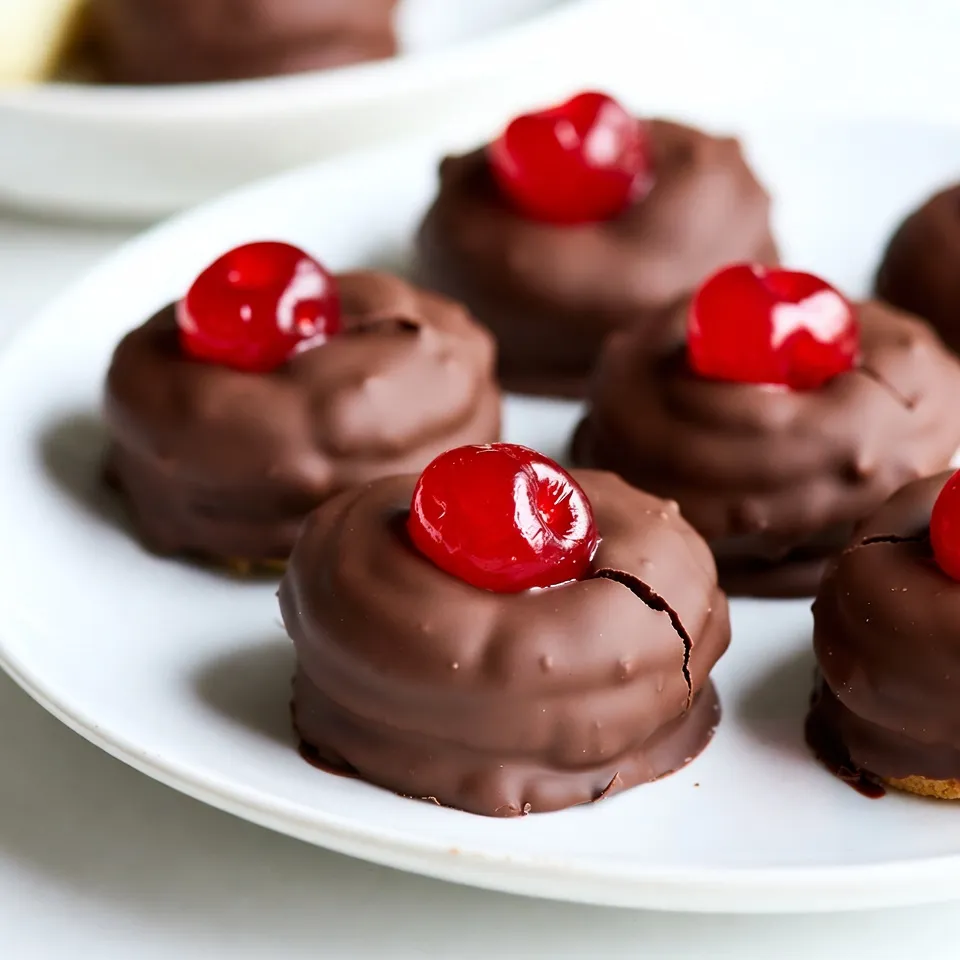 Delicious cookies filled with maraschino cherries and coated in chocolate.