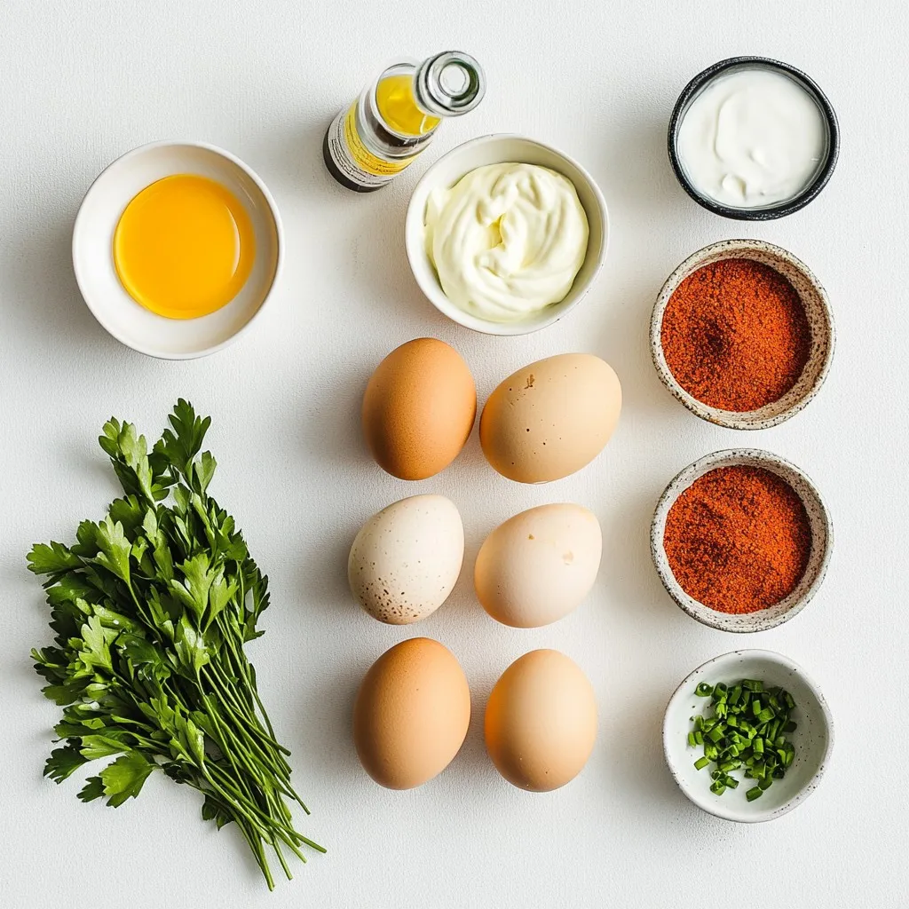 To make classic deviled eggs, you need simple, fresh ingredients: