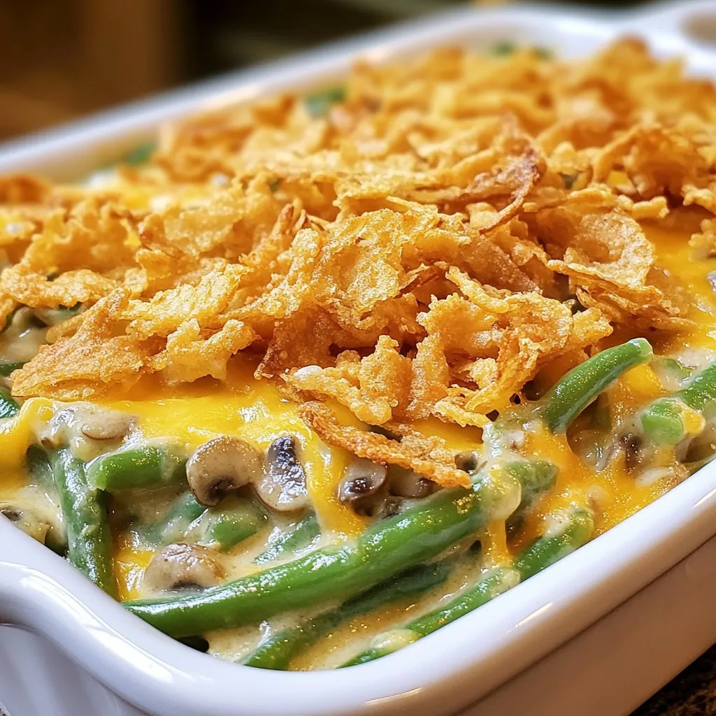 A delicious twist on the classic green bean casserole featuring fresh green beans, creamy mushroom soup, and a hint of lemon.