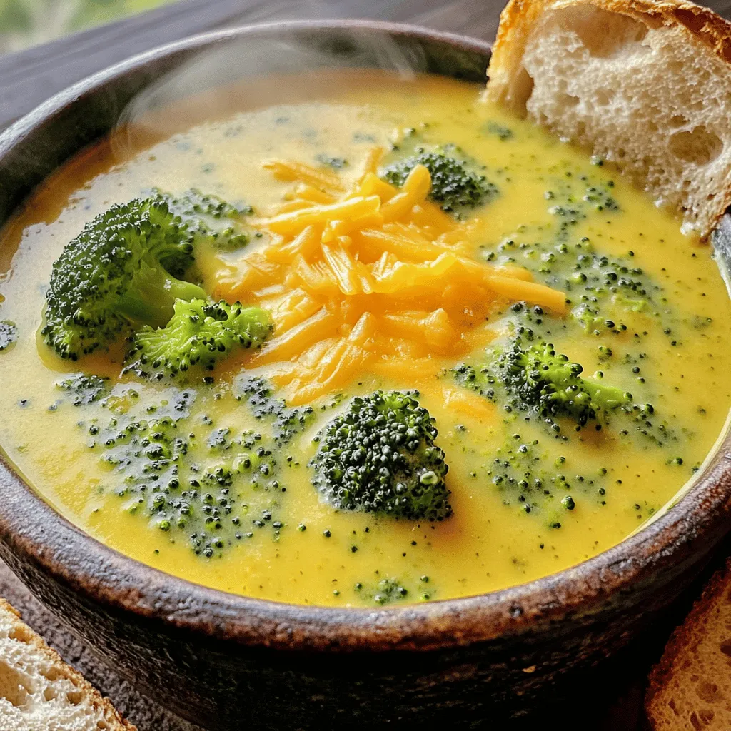 Presentation matters in making soup look inviting. Ladle the soup into bowls. Garnish with extra cheese on top and a few broccoli florets. This adds color and makes it pop. Serve with slices of crusty bread. It’s perfect for dipping and adds a nice touch to your meal. Enjoy making your soup look as good as it tastes!