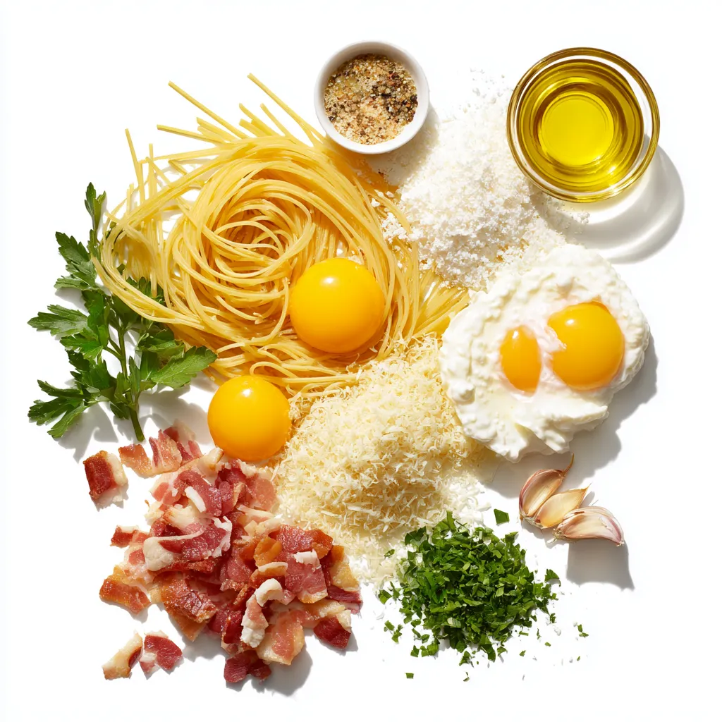 You need a few simple ingredients to make creamy carbonara. Start with pasta. Spaghetti or fettuccine works best. You will also want cream cheese for that rich flavor. Eggs add creaminess too. Parmesan cheese gives a lovely salty taste. Pancetta or turkey bacon is key for a nice crunch. Garlic adds depth. Olive oil helps cook the pancetta. Lastly, season with salt and pepper to taste. Fresh parsley brings color and freshness to the dish.
