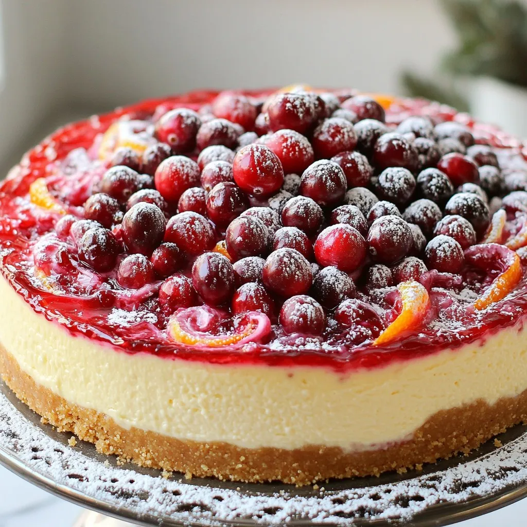 Before slicing, consider topping the cheesecake with a few extra fresh cranberries and a light dusting of powdered sugar for a beautiful festive presentation. When serving, add a dollop of whipped cream atop each slice for an extra creamy touch, making it a delightful holiday treat!