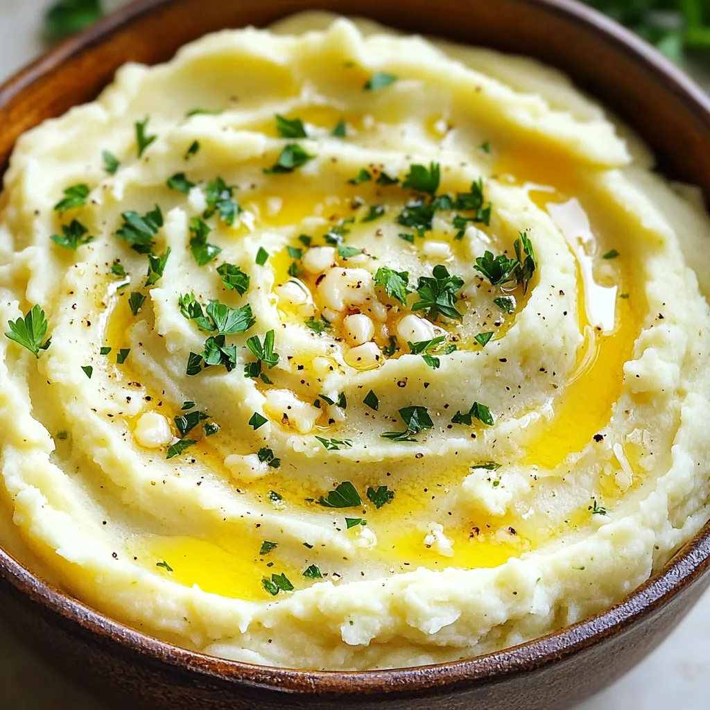 - 1 large head of cauliflower, cut into bite-sized florets - 1/2 cup cream cheese, softened to room temperature - 1/2 cup grated Parmesan cheese - 3 cloves garlic, finely minced - 1/4 cup unsalted butter, melted - Salt and freshly ground black pepper to taste - 1/4 teaspoon garlic powder (optional, for an extra kick) - Fresh parsley, finely chopped - Extra Parmesan cheese - Optional garnishes, like paprika for color To make creamy garlic parmesan mashed cauliflower, you need simple yet flavorful ingredients. Start with a large head of cauliflower. Cut it into small florets for even cooking. Cream cheese gives the dish its creamy base. Grated Parmesan adds a rich, cheesy flavor. Garlic is a must for that bold taste. Use fresh garlic cloves, finely minced, for the best flavor. Unsalted butter brings everything together, adding richness and warmth. You can adjust the seasoning with salt and black pepper. If you like a stronger garlic taste, add garlic powder. For garnishing, fresh parsley adds a pop of color. Extra Parmesan cheese on top enhances the dish's appeal. You can also sprinkle a little paprika for an added flair. This dish is not only tasty but also visually appealing, making it great for any meal. To start, fill a large pot with salted water. Bring it to a boil over high heat. Once boiling, add your cauliflower florets. Cook them for 8-10 minutes. You want them fork-tender. To check for doneness, pierce a piece with a knife. If it slides in easily, you are good to go. While the cauliflower cooks, grab a small skillet. Heat it over medium heat and add your melted butter. Once warm, stir in the minced garlic. Sauté for about 1-2 minutes. You want the garlic to be fragrant but not browned. Browned garlic can taste bitter. Once you drain your cauliflower, put it back in the pot. Pour in the sautéed garlic and melted butter. Next, add the cream cheese and grated Parmesan cheese. If you like, sprinkle in garlic powder for extra flavor. Season generously with salt and freshly cracked black pepper. Use a potato masher or an immersion blender to blend everything together. Keep mixing until it is smooth and creamy. Taste and adjust the seasoning if needed. Now it's time to serve your dish. Spoon the mashed cauliflower into a nice serving bowl. For a touch of elegance, sprinkle freshly chopped parsley on top. You can also add more grated Parmesan cheese for extra flavor. If you want, drizzle a bit of melted butter over it. This adds richness and looks great. Enjoy with your favorite protein for a full meal! To boost the taste of your mashed cauliflower, try adding more spices. Here are some ideas: - A pinch of cayenne pepper for heat. - A dash of smoked paprika for a smoky touch. - Fresh herbs like thyme or rosemary for a fragrant twist. If you're looking for cheese options, consider these: - Creamy goat cheese for a tangy flavor. - Cheddar cheese for a sharp bite. - A blend of mozzarella and Parmesan for a different twist. Use the right tools to mash your cauliflower. A potato masher works well, but an immersion blender gives a super smooth texture. Just be careful not to over-blend, or it can turn gluey. To achieve that creamy consistency, make sure to: - Use softened cream cheese. - Blend in melted butter while mashing. - Adjust the creaminess with a splash of milk or broth if needed. Prep your cauliflower ahead of time. Cut it into florets and store in the fridge. It stays fresh for a few days. Need a quick meal idea? Try these: - Serve the mashed cauliflower with grilled chicken. - Pair it with a simple salad for a light lunch. - Use it as a base for a savory bowl with veggies and protein. {{image_4}} You can make creamy garlic Parmesan mashed cauliflower even more exciting. Here are some low-carb options: - Using different vegetables: Try using broccoli or turnips. Both can create a similar creamy texture. - Keto-friendly options: Cauliflower is already low in carbs, but you can enhance it. Add cheese or cream for a richer flavor without extra carbs. If you want a dairy-free version, I have great news for you! Here are simple swaps: - Non-dairy cream cheese options: Use cashew-based or tofu cream cheese. They give a nice creamy feel without dairy. - Plant-based cheese suggestions: Nutritional yeast or vegan Parmesan can add cheesy flavor. They are tasty and keep the dish plant-based. You can change up the taste of mashed cauliflower easily. Here are some fun ideas: - Adding herbs or spices: Fresh herbs like thyme or rosemary can brighten up the dish. You can also add a pinch of red pepper flakes for some heat. - Incorporating other ingredients: Mix in sautéed onions or roasted garlic for extra depth. You can even add a splash of lemon juice for a refreshing twist. Store leftover creamy garlic Parmesan mashed cauliflower in an airtight container. It keeps well in the fridge for about 3-4 days. Make sure to let it cool before sealing. This keeps moisture from building up inside the container. To freeze mashed cauliflower, follow these steps: - Let the mashed cauliflower cool completely. - Spoon it into freezer-safe bags or containers. - Remove as much air as possible before sealing. - Label with the date for easy tracking. For reheating, take it out of the freezer and let it thaw overnight in the fridge. Reheat on the stovetop over low heat, stirring often, or in the microwave. Add a splash of cream or a little butter to revive its creamy texture. Creamy garlic Parmesan mashed cauliflower pairs nicely with grilled chicken, steak, or fish. It also works well as a side for roasted vegetables. For meal prep, consider portioning it into single servings. This makes it easy to grab for quick lunches or dinners during the week. Yes, you can use frozen cauliflower. It saves time and is easy to find. - Cooking Tips: - Thaw the cauliflower first for even cooking. - Cook it for 5-7 minutes in boiling water. - Check for fork-tenderness before mashing. To make it dairy-free, swap out dairy ingred