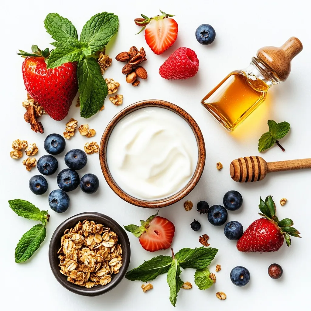 To make delicious Greek yogurt parfait jars, gather these simple ingredients: