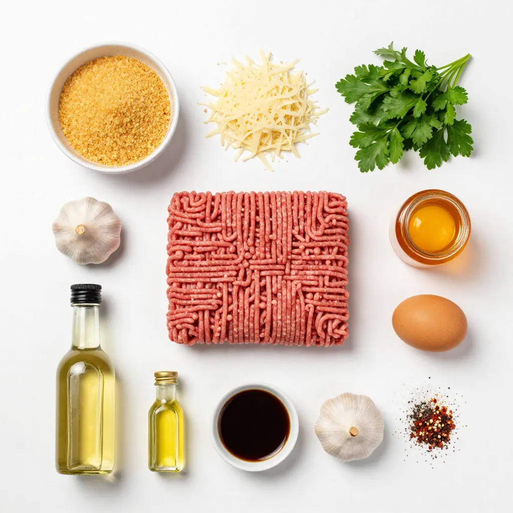 These main components create a tasty base. The meat adds flavor and protein. Breadcrumbs keep the meatballs tender. Parmesan cheese adds a nice richness. Fresh parsley gives a pop of color and freshness. Garlic brings a wonderful aroma, while the egg helps bind everything together. Salt and pepper enhance all the flavors.