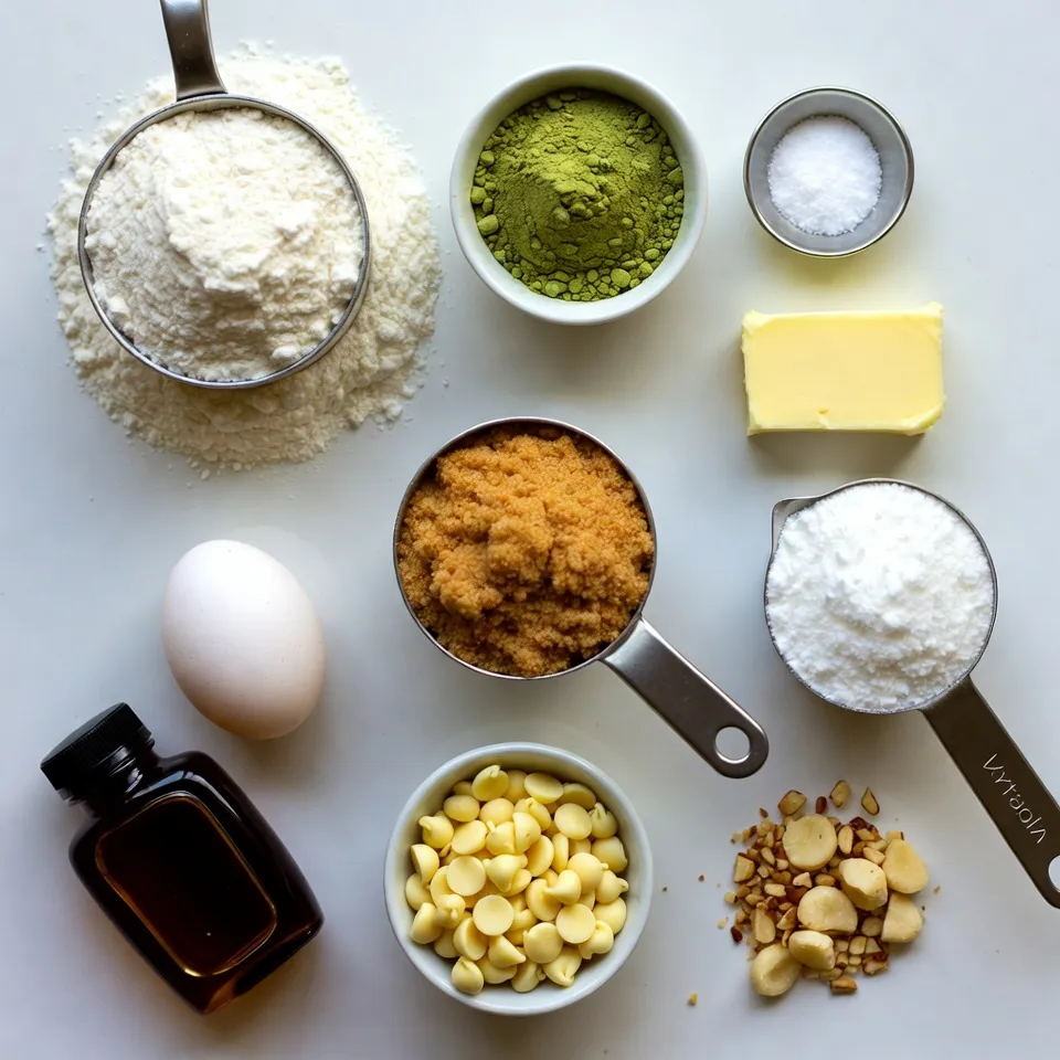 To make these delightful matcha white chocolate cookies, gather the following: