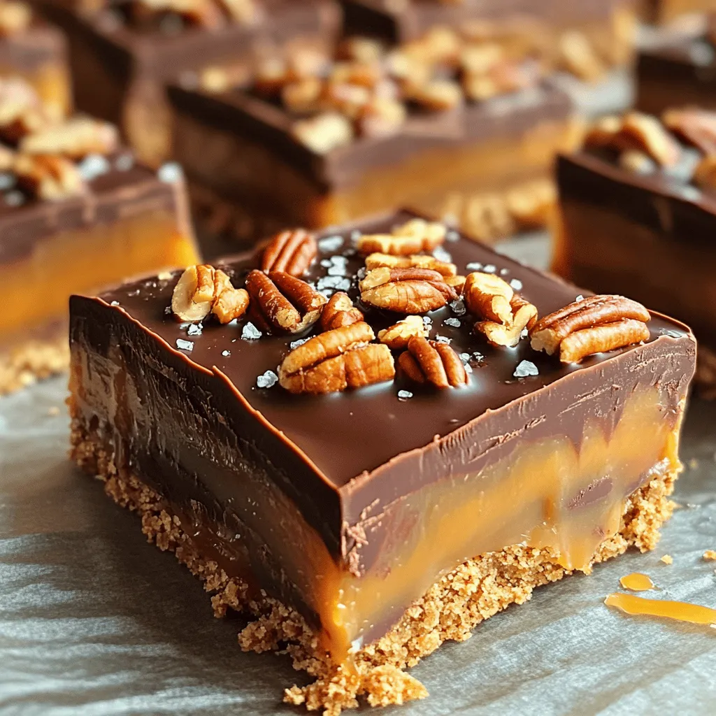 One big mistake is rushing the chilling time. If you cut them too soon, they may fall apart. Always chill for at least three hours. Another issue is uneven layers. Press your crust firmly and spread chocolate and caramel evenly. This ensures a great texture in every bite.