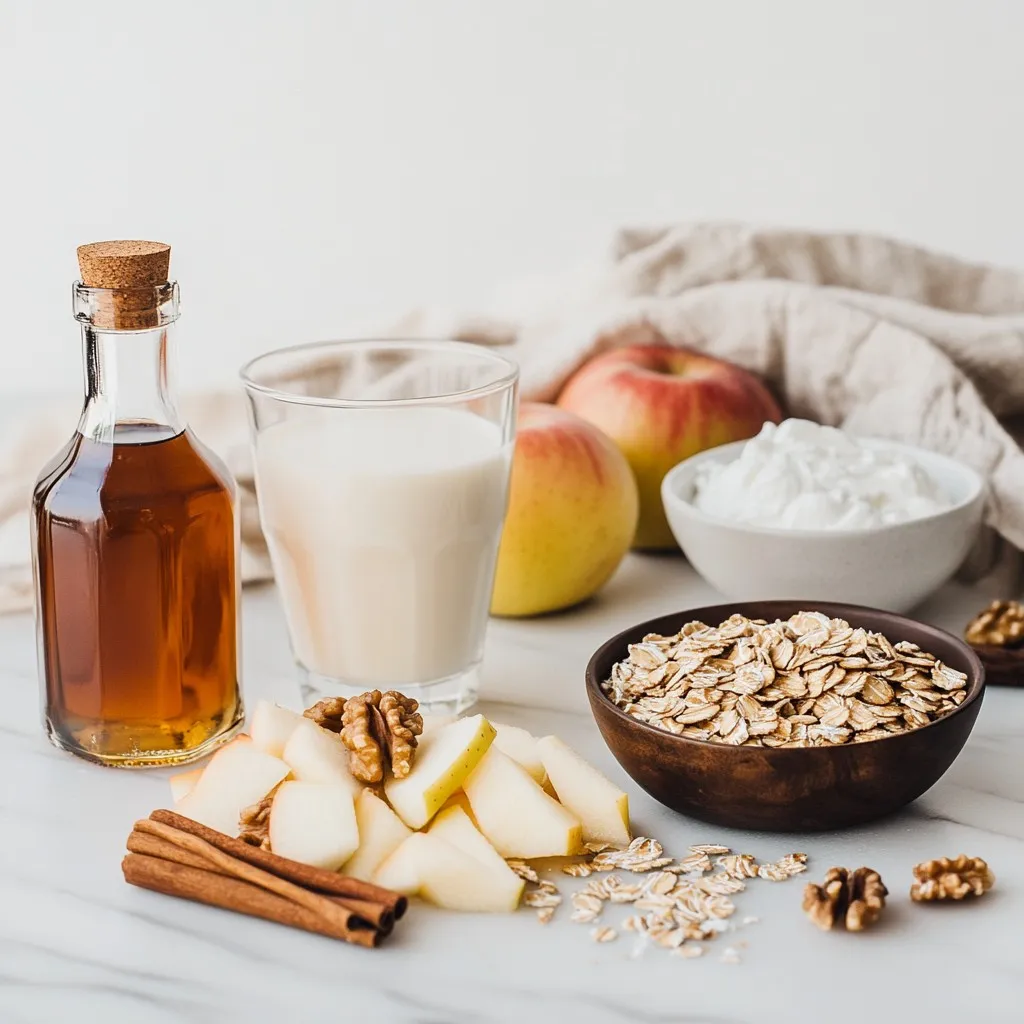 Each ingredient plays a key role. The rolled oats form the base. Almond milk adds creaminess. Diced apples bring sweetness and crunch. Maple syrup or honey adds a touch of sweetness. Ground cinnamon gives that warm, cozy flavor. Vanilla extract enhances the taste, while Greek yogurt adds extra creaminess. Nuts provide a nice crunch and extra nutrients. Finally, salt balances all the flavors.