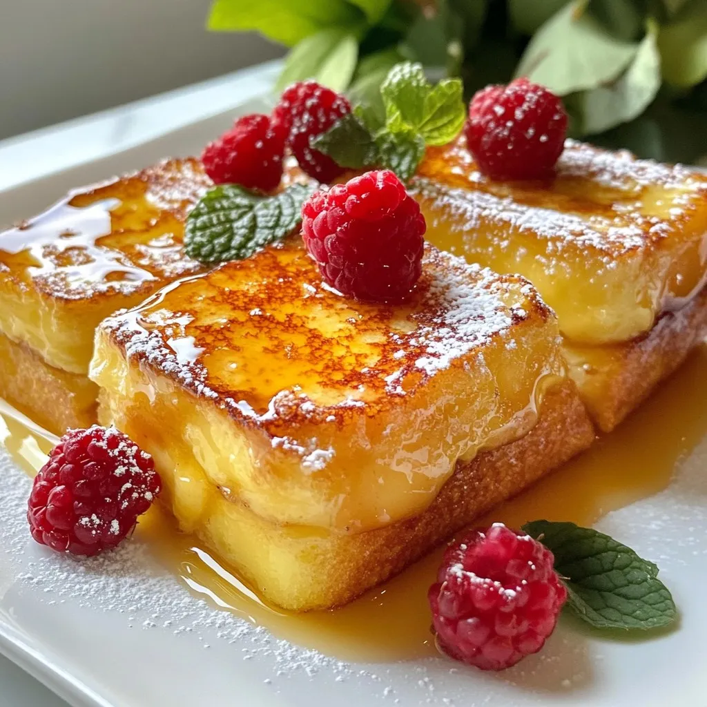 Serve and Enjoy: Serve your luxurious French toast warm, garnished with fresh berries and a dusting of powdered sugar for an extra touch of sweetness and visual appeal.