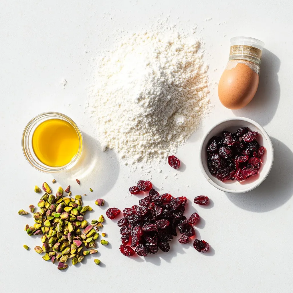 To make delicious pistachio cranberry wreath cookies, gather these ingredients: