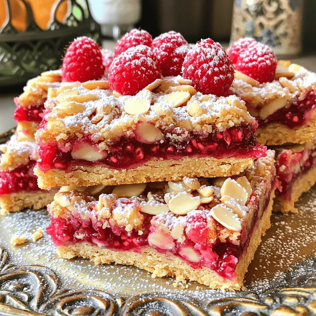 The main ingredients are pretty simple yet delightful. The flour forms the base of the shortbread. The powdered sugar adds a gentle sweetness. Using unsalted butter gives you control over salt levels. The almond extract adds a rich flavor, making these bars special. The raspberries bring a bright, fruity taste, while the sliced almonds add crunch.