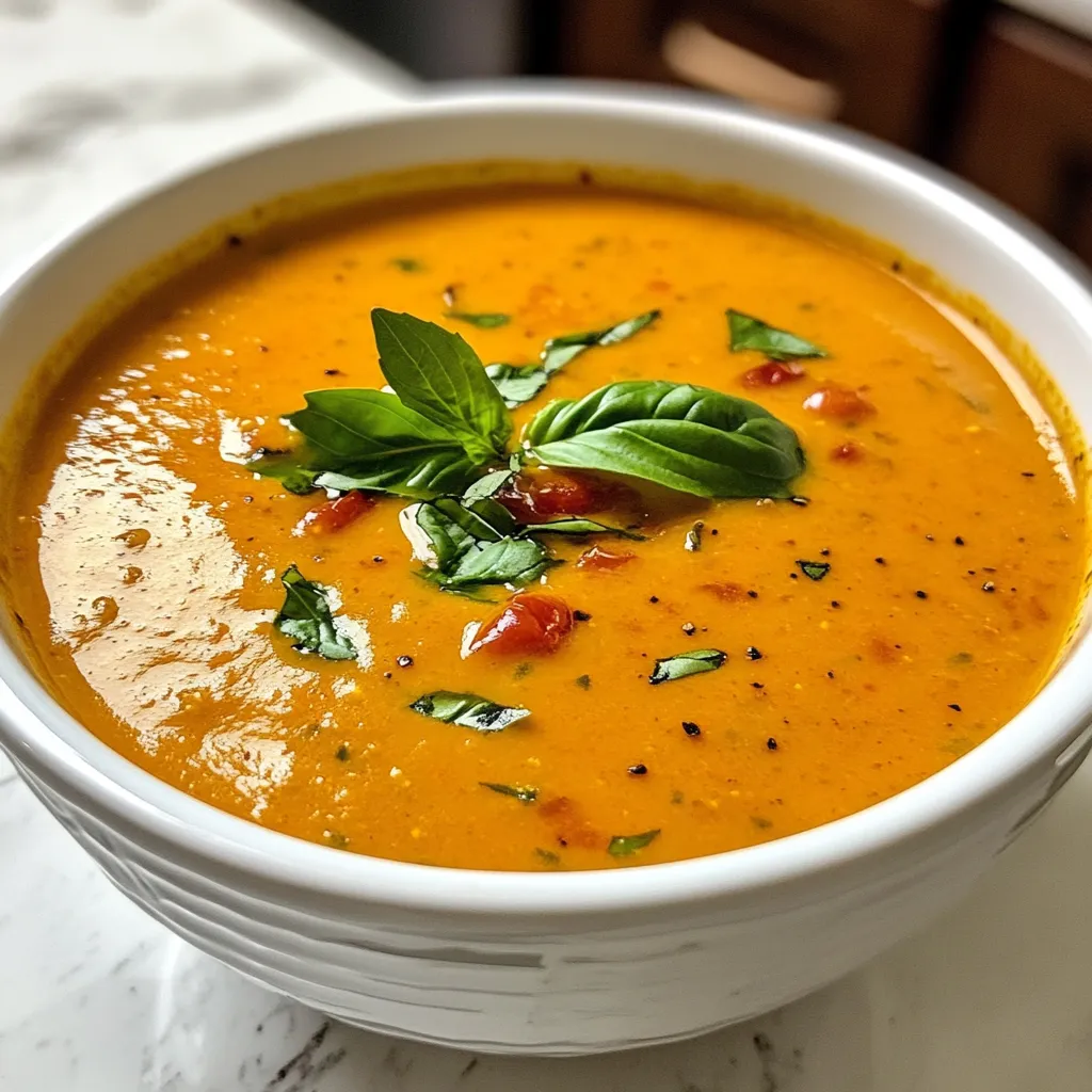 For the base, vegetable broth adds warmth. If you like creamy soup, heavy cream is a great choice. Finally, fresh basil leaves make a lovely garnish. They add color and freshness.
