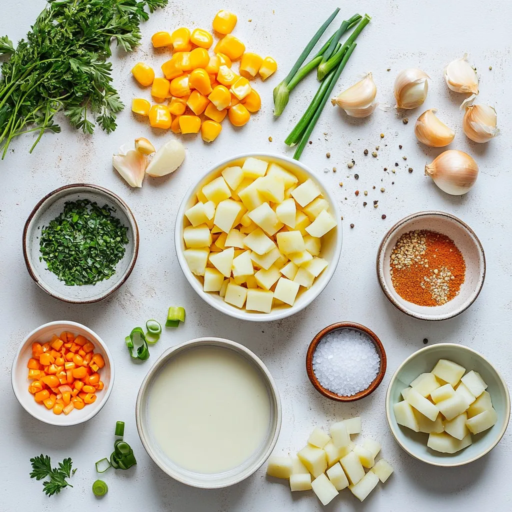 - 6 medium russet potatoes, peeled and cut into 1-inch cubes - 1 medium onion, finely diced - 3 cloves of garlic, minced - 4 cups of low-sodium vegetable broth - 1 cup of unsweetened almond milk (or your choice of low-calorie milk alternative) - 1 cup of frozen corn kernels - 1 teaspoon of dried thyme - 1 teaspoon of smoked paprika - Sea salt and freshly ground black pepper, to taste - 2 green onions, thinly sliced (for garnish) - Fresh parsley, roughly chopped (for garnish) You can make this soup your own! Here are a few ideas: - For a spicy kick, add a pinch of cayenne pepper. - Swap almond milk for coconut milk for a tropical twist. - Add cooked bacon bits for a savory bite. - Toss in diced carrots for extra color and nutrients. - Replace russet potatoes with sweet potatoes for a sweeter taste. This soup is not just tasty; it's also nutritious! Here’s a quick look: - Calories per serving: About 150 - Protein: 4g - Carbohydrates: 30g - Fat: 2g - Fiber: 4g - Sodium: 300mg This soup packs flavor without heavy calories. Perfect for a warm lunch or dinner! Enjoy this creamy, satisfying dish, knowing it's also good for you. {{ingredient_image_2}} Start by peeling and cutting the potatoes into 1-inch cubes. Next, finely dice the onion and mince the garlic. Place all these ingredients into the slow cooker. Add the frozen corn evenly on top. This mix brings great flavor and texture. Now, pour in 4 cups of low-sodium vegetable broth. This broth gives the soup depth. Add 1 cup of unsweetened almond milk for creaminess. Next, sprinkle in 1 teaspoon of dried thyme and 1 teaspoon of smoked paprika. Don’t forget to season with sea salt and freshly cracked black pepper to taste. Cover the slow cooker with its lid. Set it to cook on low for 6 to 8 hours. If you are in a hurry, cook it on high for 3 to 4 hours. Stir occasionally, if you can. This helps mix the flavors well. The potatoes should be fork-tender when done. Once the cooking time is up, grab an immersion blender. Blend the soup directly in the slow cooker. You can blend it until smooth or leave some chunks for texture. If you prefer a chunkier soup, blend only half of it. This gives a nice contrast in every bite. After blending, taste the soup. This is the moment to adjust the flavors. Add more salt or pepper if needed. Each bite should feel balanced and just right. This step makes a big difference in how your soup will taste. For the best texture, blend only half the soup. This keeps some potato chunks. You can also use an immersion blender for smoothness. If you want a thicker soup, add less broth at first. If it’s too thick, add more broth slowly until it feels just right. Garnishes make your soup pop. I love using sliced green onions for a fresh bite. Fresh parsley adds color and flavor too. For a creamy touch, drizzle a little almond milk on top. You can even sprinkle a bit of smoked paprika for an extra kick. One common mistake is overcooking the potatoes. Check them after 6 hours on low. If they are fork-tender, it’s time to blend. Another mistake is skipping the seasoning. Taste as you go, and adjust salt and pepper. This will bring out the soup's best flavors. Pro Tips Choose the Right Potatoes: Russet potatoes are ideal for this soup as they become creamy when cooked. If you prefer a different flavor, try Yukon Gold potatoes for a buttery taste. Customize the Creaminess: For a richer soup, you can add a splash of heavy cream or a dollop of Greek yogurt after blending. To keep it skinny, stick with almond milk. Add More Veggies: Enhance the nutritional value by incorporating additional vegetables like carrots, celery, or bell peppers. Just chop them finely and add them in at the beginning. Perfect Storage: This soup freezes beautifully! Store in airtight containers for up to 3 months. Just reheat on the stove, adding a bit more broth if needed to adjust the consistency. {{image_4}} To make this soup vegan, simply use vegetable broth and almond milk. These ingredients keep it creamy and rich without any dairy. You can also add more veggies like carrots or celery for added flavor and nutrients. If you want a low-carb soup, swap potatoes for cauliflower. Cauliflower gives a smooth texture without the carbs. You can follow the same steps in the recipe. Just make sure to adjust cooking time since cauliflower cooks faster than potatoes. You can play with the ingredients to suit your taste. For example, use garlic powder instead of fresh garlic. If you don’t have almond milk, any low-calorie milk works well. You can also add spices like cumin for a different flavor kick. After enjoying your delicious soup, let it cool down first. Pour any leftovers into an airtight container. This keeps the soup fresh. Store it in the fridge for up to five days. Make sure you label the container with the date. This helps you remember when you made it. Freezing this potato soup is easy and smart. Use freezer-safe bags or containers. Leave some space at the top for expansion. The soup can freeze well for up to three months. When ready to eat, thaw it in the fridge overnight. This keeps the flavor and texture intact. Reheating your soup is simple. You can use the microwave or the stove. If using a microwave, heat in short bursts. Stir after each burst to avoid hot spots. On the stove, pour the soup into a pot. Heat over low to medium heat, stirring often until warm. Add a splash of almond milk if it seems thick. To add heat, try using cayenne pepper. Start with a small amount, about 1/4 teaspoon. You can adjust it based on your taste. Another option is to add chopped jalapeños or a splash of hot sauce. These will give the soup a nice kick without overpowering the other flavors. Yes, you can! While russet potatoes give a great texture, you can use Yukon Gold or red potatoes. These types will add a different flavor and creaminess. Just remember to cut them into 1-inch cubes for even cooking. This soup can last up to five days in the fridge. Just make