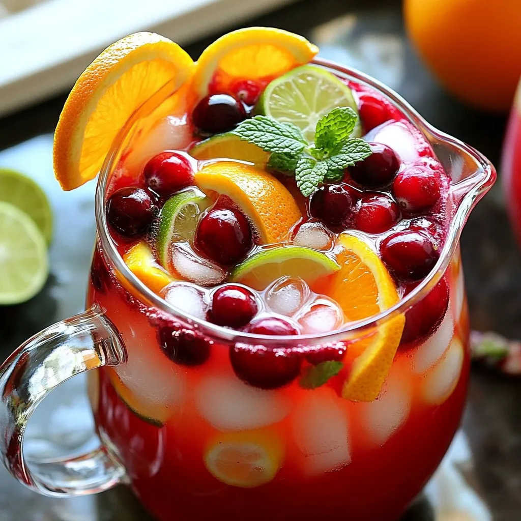 A refreshing and vibrant punch featuring sparkling water, citrus juices, and fresh berries, perfect for winter gatherings.
