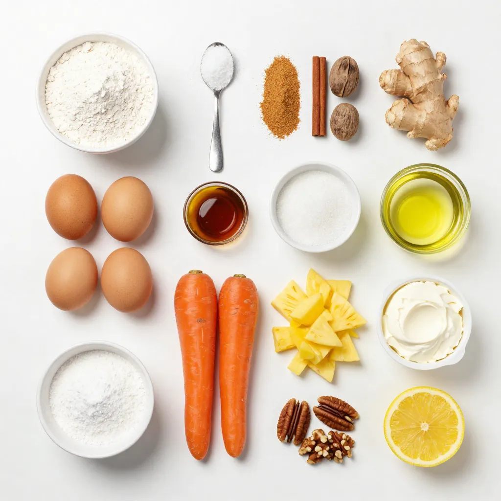 Next, collect your wet ingredients. You’ll need eggs, sugar, oil, and vanilla. The eggs help bind the cake. The sugar adds sweetness. The oil keeps it moist. Carrots and pineapple bring natural sweetness and moisture. Grate those carrots finely to blend well.