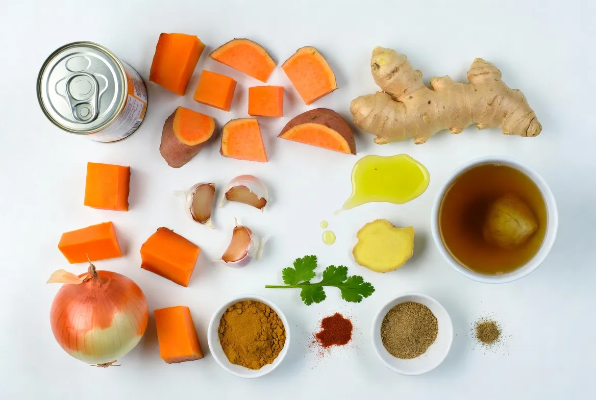 These main ingredients form the heart of the soup. Butternut squash brings a rich, sweet flavor. Sweet potatoes add creaminess and a hint of earthiness. The onion gives depth, while garlic and ginger add warmth and spice.
