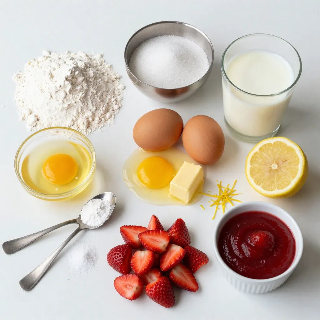 - 1 cup all-purpose flour - 1 cup granulated sugar - 1/2 cup unsalted butter, softened - 2 large eggs - 1/2 cup buttermilk - Zest of 1 lemon (about 1 tablespoon) - 2 tablespoons freshly squeezed lemon juice - 1 teaspoon baking powder - 1/2 teaspoon baking soda - 1/4 teaspoon salt - 1 cup fresh strawberries, finely diced - 1/4 cup homemade strawberry puree Each ingredient plays a vital role in the recipe. - All-purpose flour gives structure. It helps the cupcakes rise and hold their shape. - Granulated sugar adds sweetness, making each bite delightful. It also helps create a light texture when creamed with butter. - Unsalted butter adds rich flavor and moisture. Softening it is key to getting a fluffy batter. - Eggs bind the ingredients and add moisture. They also help with rising. - Buttermilk keeps the cupcakes moist. It also gives a slight tang, enhancing the flavor. - Lemon zest adds a bright flavor. It lifts the taste of both the lemon juice and strawberries. - Baking powder and baking soda are leavening agents. They create the perfect rise for light cupcakes. - Salt balances the sweetness. It enhances all the flavors in the cupcakes. - Fresh strawberries add bursts of flavor and color. They make each bite extra special. - Strawberry puree adds moisture and enhances the strawberry flavor. You can adjust the recipe to fit your taste. - Frosting: Try lemon or cream cheese frosting for a tasty finish. - Other fruits: Swap in raspberries or blueberries for a mix of flavors. - Nuts: Add chopped nuts like almonds for extra crunch. - Coconut: Fold in shredded coconut for a tropical twist. - Gluten-free flour: Use a gluten-free blend if needed. Experiment with these options to find your favorite combination! {{ingredient_image_2}} First, set your oven to 350°F (175°C). This heat is perfect for our cupcakes. While the oven warms up, line a 12-cup muffin tin with fun, colorful cupcake liners. This step not only keeps the cupcakes from sticking but also makes them look great. To make strawberry puree, take about 1/2 cup of fresh strawberries. Place them in a blender. Blend until smooth. This puree adds a tasty burst of flavor to your cupcakes. Set it aside for later. In a large bowl, add 1/2 cup of softened butter and 1 cup of granulated sugar. Use an electric mixer to beat them until light and fluffy. This will take about 3-4 minutes. Next, add 2 large eggs, one at a time. Mix well after each egg. Then, pour in 1/2 cup of buttermilk, the zest of 1 lemon, and 2 tablespoons of fresh lemon juice. Mix everything until smooth. In another bowl, whisk together 1 cup of all-purpose flour, 1 teaspoon of baking powder, 1/2 teaspoon of baking soda, and 1/4 teaspoon of salt. Slowly add this dry mix to the wet ingredients. Mix on low speed until just combined. Be careful not to overmix! Now, gently fold in the diced strawberries and the strawberry puree. This ensures even flavor in every bite. Spoon the batter into the prepared cupcake liners. Fill each one about two-thirds full. This allows space for rising. Place the muffin tin in the oven. Bake for 18-20 minutes. To check if they are done, insert a toothpick into the center. If it comes out clean, they are ready! Let the cupcakes cool in the tin for about 5 minutes. Then, carefully move them to a wire rack to cool completely. Once they are cool, you can frost them if you like. A lemon or strawberry frosting works great. For a lovely touch, garnish with a slice of fresh strawberry and a sprinkle of lemon zest. Enjoy your delicious treats! When making strawberry lemonade cupcakes, avoid these common mistakes: - Overmixing the Batter: This can lead to tough cupcakes. Mix just until combined. - Skipping the Lemon Zest: The zest adds a bright flavor. Don’t skip it! - Not Measuring Ingredients: Accurate measurements ensure the best results. Use measuring cups. - Underbaking: Check for doneness with a toothpick. It should come out clean. To keep your cupcakes moist and delicious, try these tips: - Use Room Temperature Ingredients: Ensure butter, eggs, and buttermilk are at room temperature. This helps them mix well. - Don’t Overfill the Liners: Fill each liner only two-thirds full. This allows room for rising. - Check Oven Temperature: Use an oven thermometer. An incorrect temperature can dry out your cupcakes. - Add Strawberries Gently: Folding in strawberries carefully keeps them intact, adding moisture. Keeping your cupcakes fresh is easy with these storage tips: - Cool Completely Before Storing: Let them cool on a wire rack before covering. This prevents sogginess. - Use an Airtight Container: Store in an airtight container at room temperature. This keeps them soft. - Add a Slice of Bread: Place a slice of bread in the container. It helps maintain moisture. - Freeze for Longer Storage: If you need to store them for longer, freeze them. Wrap each cupcake tightly in plastic wrap. Pro Tips Use Room Temperature Ingredients: Make sure your butter and eggs are at room temperature for a smoother batter and better rise. Fresh Strawberries for Flavor: Always use fresh strawberries for the best flavor and texture; frozen berries can make the batter too wet. Don't Overmix: Mix the batter until just combined to keep the cupcakes light and fluffy; overmixing can lead to dense cupcakes. Cool Completely Before Frosting: Allow the cupcakes to cool completely on a wire rack before adding frosting to prevent it from melting. {{image_4}} You can change the flavor of your cupcakes with different frostings. A classic lemon buttercream adds a bright zing. To make it, mix softened butter, powdered sugar, lemon juice, and zest. You can also try cream cheese frosting. The tangy flavor pairs well with strawberry and lemon. For a fun twist, consider a strawberry whipped cream. This light frosting is easy to spread and tastes fresh. These cupcakes are great for mixing in other fruits. You can swap out strawberries for raspberries or blueberries. Both fruits give a sweet and tar