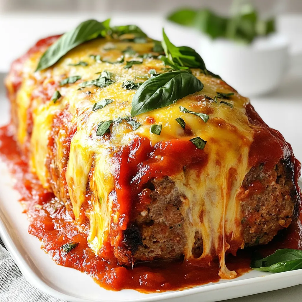 Serve the meatloaf slices on a beautiful platter, adorned with fresh basil leaves for color. Accompany the dish with a side bowl of marinara sauce for dipping and a generous sprinkle of grated Parmesan on top to add an extra layer of flavor and texture!