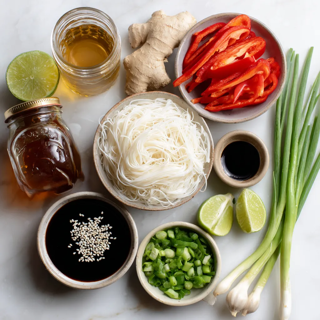 When I prepare Sweet Chili Garlic Noodles, I focus on fresh and vibrant ingredients. The rice noodles are the base of the dish. They soak up all the lovely flavors. I use 8 ounces, which is perfect for two servings.