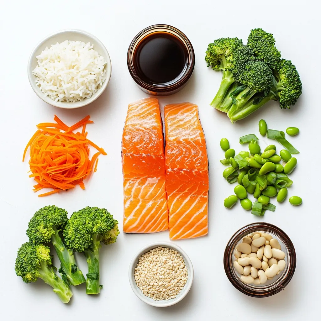 To make a teriyaki glazed salmon bowl, you need fresh and simple ingredients. Here is a list of what you’ll need: