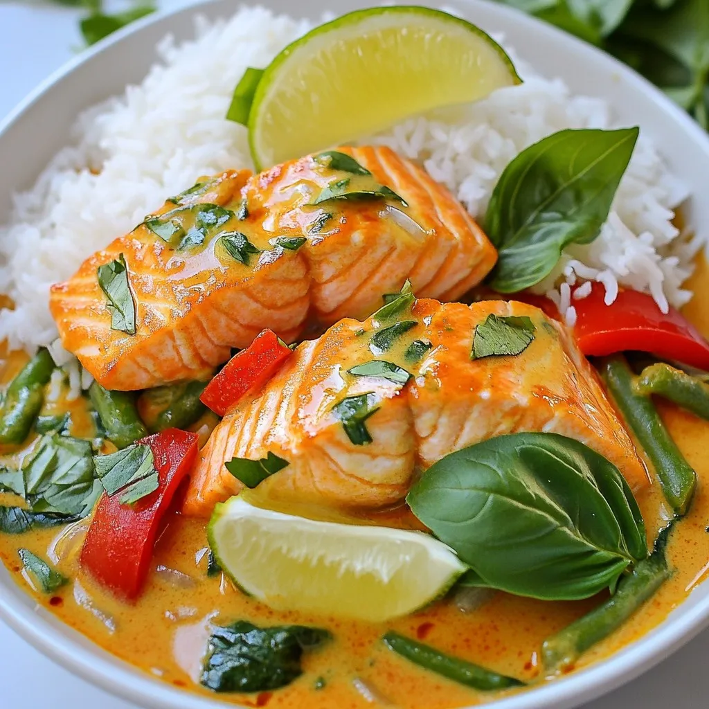 A fragrant and creamy curry featuring salmon, coconut milk, and fresh vegetables.