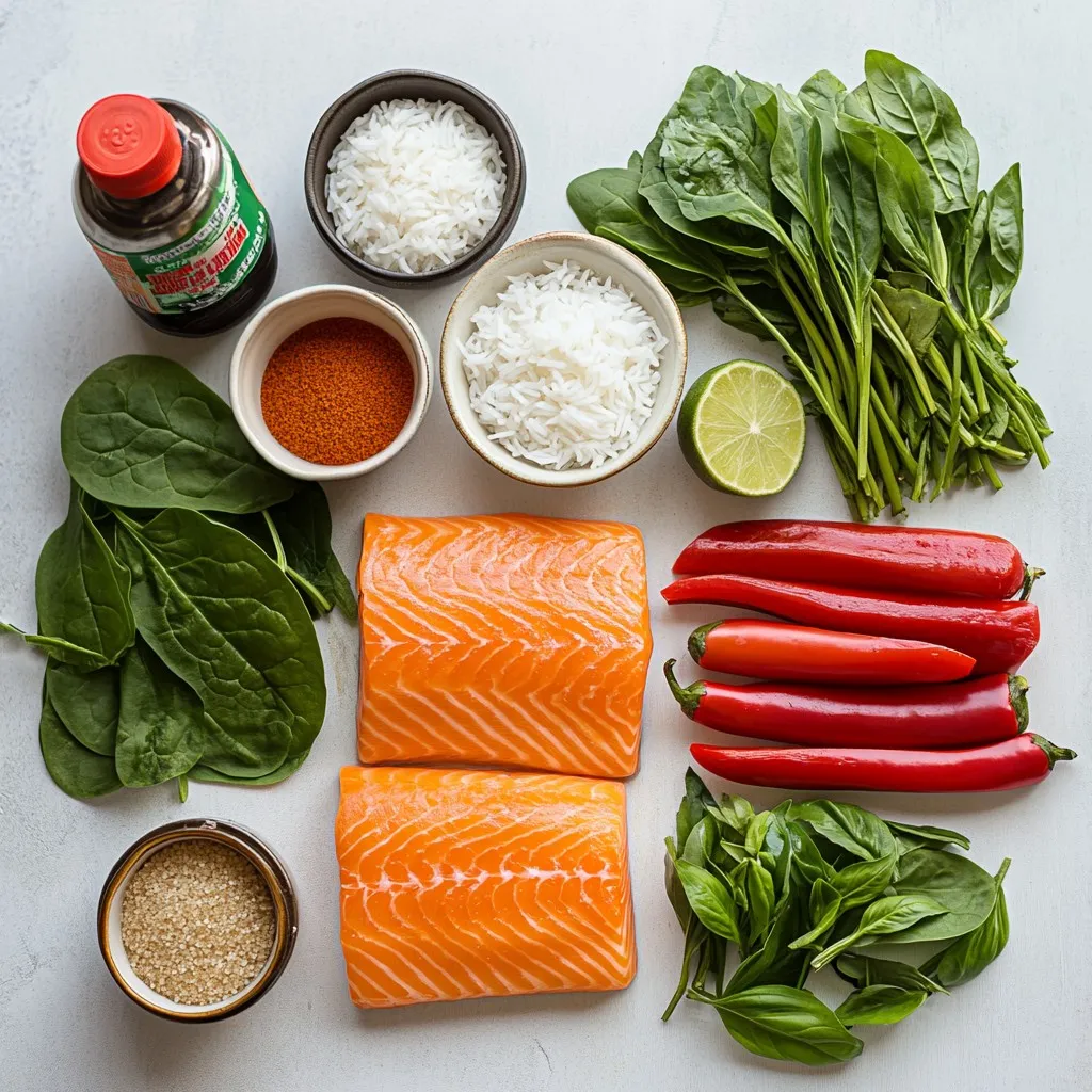 The main ingredients create a rich, creamy dish. The salmon brings protein and healthy fats. Coconut milk adds creaminess while balancing the spices. The red curry paste provides warmth and flavor. Fish sauce offers a touch of umami. Brown sugar sweetens the dish, enhancing the flavors. Vegetable broth pulls it all together, creating a satisfying sauce.