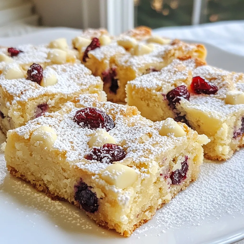 Deliciously sweet blondies with white chocolate and tart cranberries, perfect for any occasion.